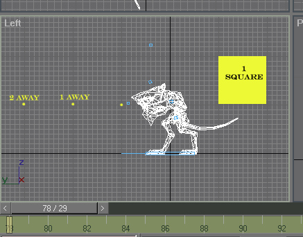 In animating models, you have 2 options about how you can move an object. One is by actually moving that object up, down, right, left, backwards or forwards. The second is by rotating objects on their pivots. A vast majority of creature animations are accomplished through pivoting it’s joints. Rarely will you actually move parts up, down, right or left. When you do actually move an object up, down, left, right, back or forward, it’s generally the main body that pulls all limbs with it. This is used to move forward to attack, move back to dodge an attack, move up and down slightly during a walk or twist and fall down to the ground when dead.