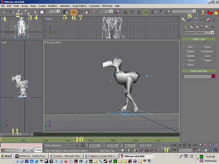 Use the NWmax bar to open “c_axebeak3.mdl” in Gmax (lesson 4)